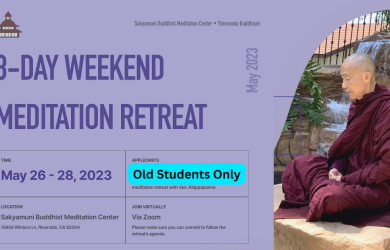 REGISTRATION FOR THE 10-DAY MEDITATION RETREAT WITH THE MOST VENERABLE KHIPPAPAÑÑO KIM TRIEU ♥ Date: 6pm, October 4th-6pm, October 14th, 2023 ♥ Location: Sakyamuni Buddhist Meditation Center, 15950 Winters Ln, Riverside, CA 92504 …