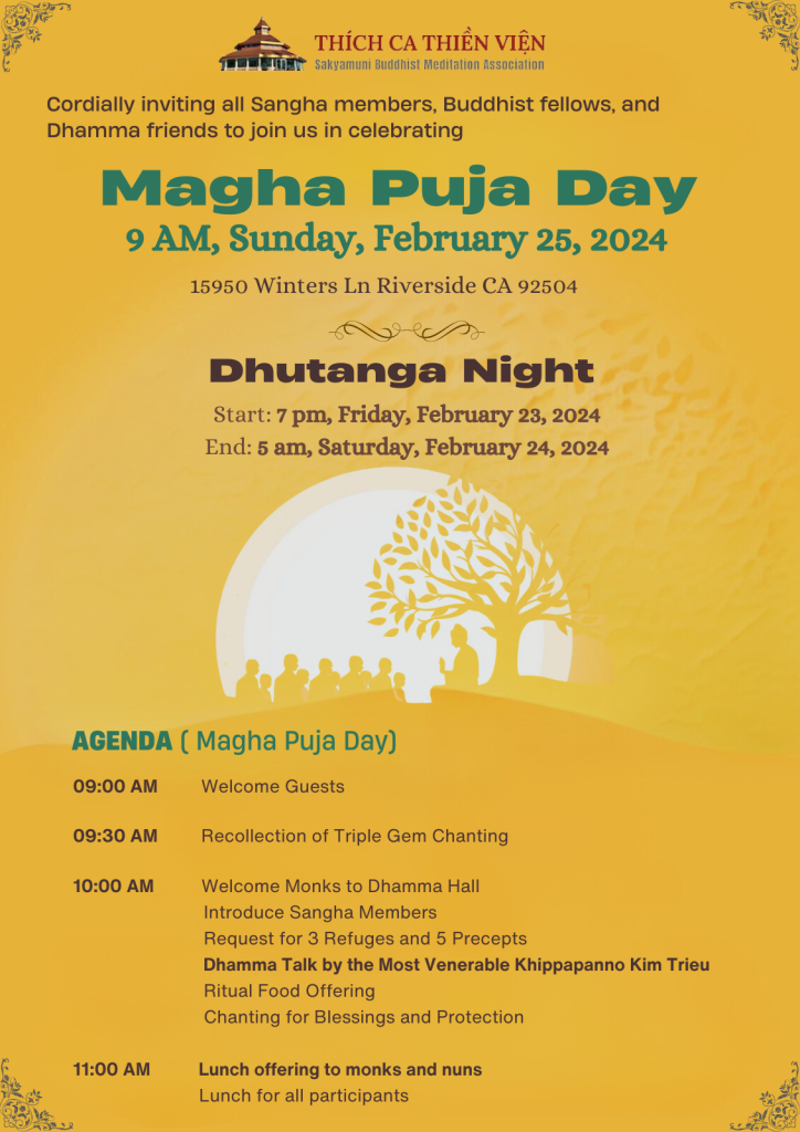 INVITATION FOR THE 2024 MAGHA PUJA DAY CELEBRATION AND DHUTANGA NIGHT
