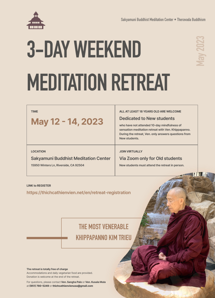 ANNOUNCEMENT OF 3-DAY MEDITATION RETREAT WITH THE MOST VENERABLE KHIPPAPANNO KIM TRIEU